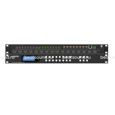 HDMI 2.0, поддержка 4k/60/4:4:4, поддержка 3d-видео. HDCP 2.2/1.4, HDR10, EDID, CEC, ARC, 8 входов hdmi, 8 выходов hdmi, 8 аналоговых trs-выходов (извлечение аудио), 8 аналоговых trs-входов (наложение аудио), 8 выходов s/pdif цифрового аудио, поддержка Dolby TrueHD, Dolby Atmos, DTS-X, LPCM 2.0/5.1, 24бит 192кГц, управление с передней панели, с помощью ИК-пульта, через веб-интерфейс. Читать подробнее -