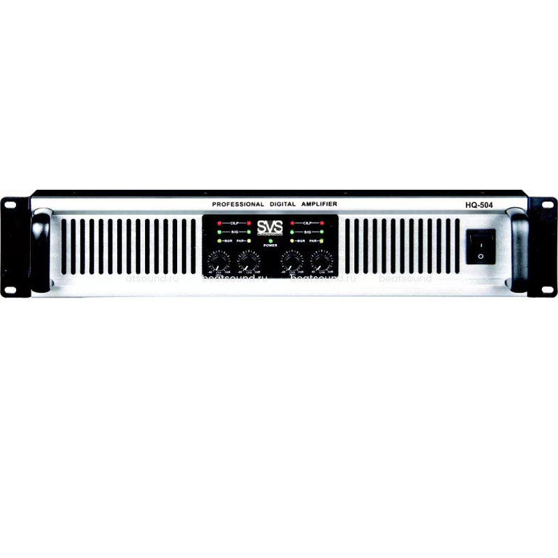 SVS Audiotechnik HQ-504 - это четырёхканальный высокоэффективный усилитель класса D высотой 2U, предназначенный для инсталляционных объектов. Усилитель выдает 4x500 Вт при 8 Ом, 4x750 Вт при 4 Ом. Передние светодиоды предоставляют информацию о наличии сигнала, ограничителях и состоянии защиты. Читать подробнее