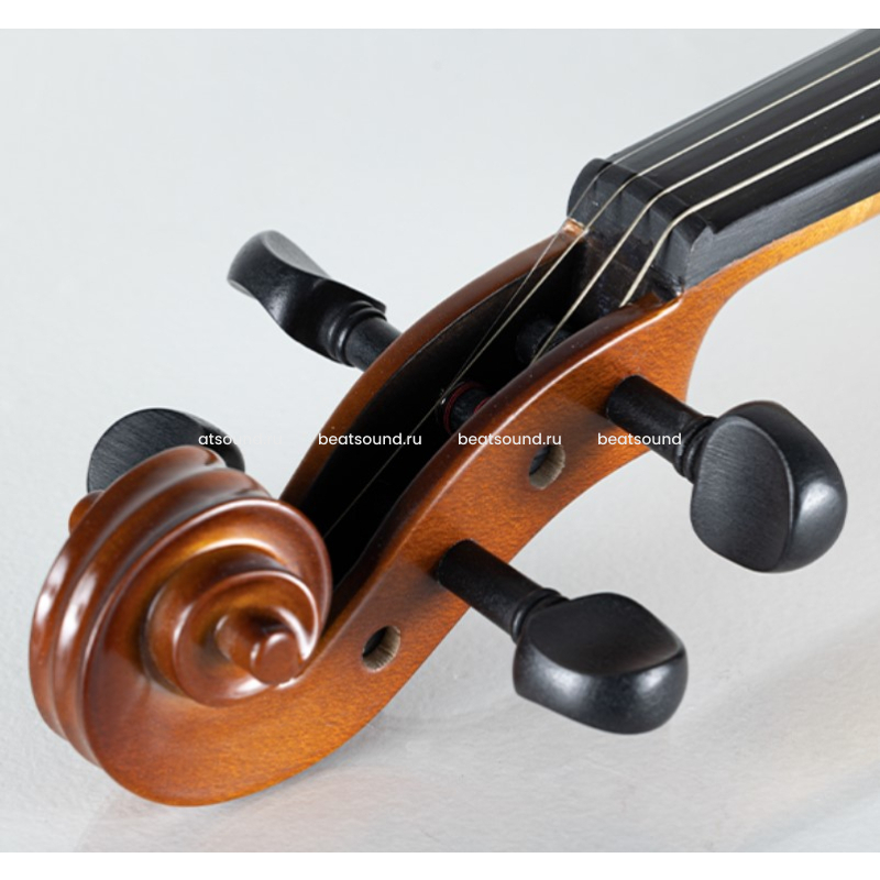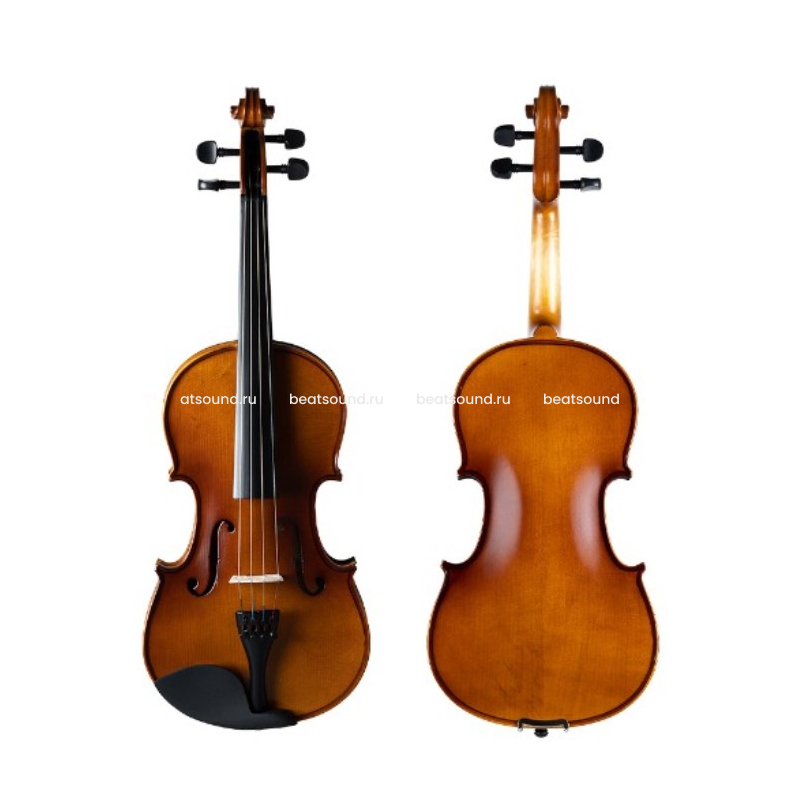Верхняя дека скрипки изготовлена из резонансной ели, легкой и прочной древесины, высушенной в течении нескольких лет. Для задней деки и обечайки используется из жесткой древесины клена. Машинки на каждой струне облегчают игру начинающим скрипачам. Читать подробнее