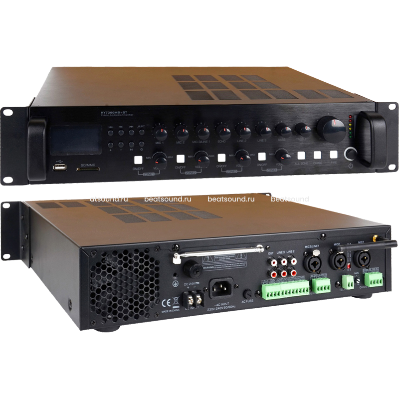 Усилитель трансляционный на 4 регулируемых зоны, мощность усилителя 240 Вт, встроенные MP3, USB, FM, SD Card, Bluetooth. Читать подробнее