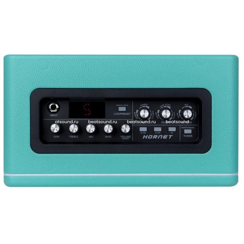 Комбоусилитель серии Hornet имеет два режима управления, а именно режим LIVE (параметры WYSIWYG) и PRESET (параметры могут быть сохранены в виде предустановок). Модель имеет регулируемое усиление, трехполосный эквалайзер и регуляторы громкости, а также модули задержки и реверберации, которыми можно независимо управлять с помощью функции TAP Tempo в реальном времени. Кроме того, серия Hornet имеет встроенный высокочувствительный тюнер и функцию воспроизведения Bluetooth с регулируемым уровнем громкости, а также разъем для наушников для бесшумных занятий.