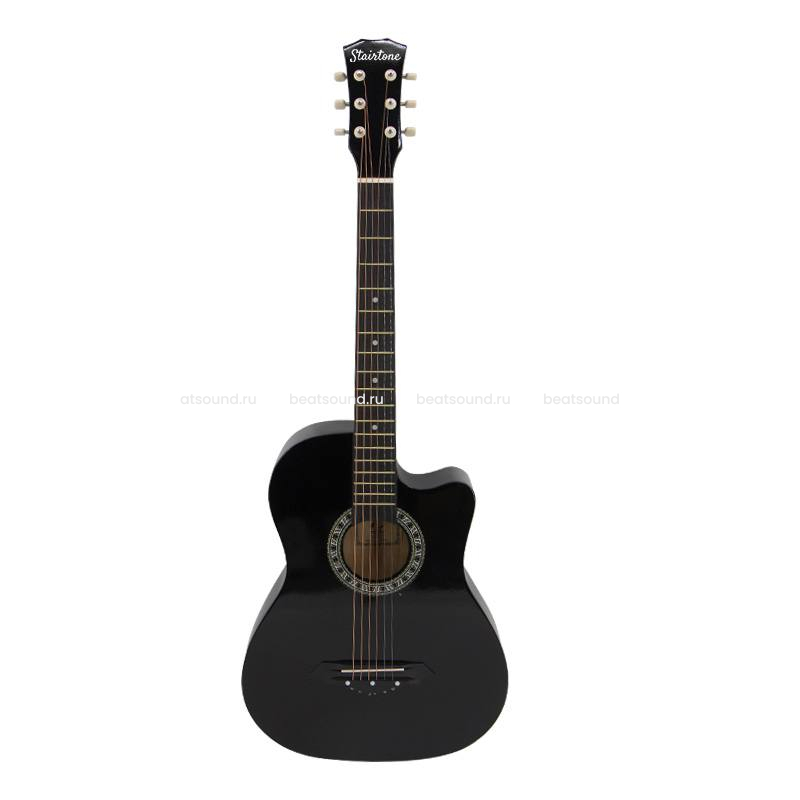 На Stairtone A-38C BK установлены металлические струны, дающие звонкий, яркий звук. Модель представлена в элегантном черном цвете с глянцевой лакированной отделкой.