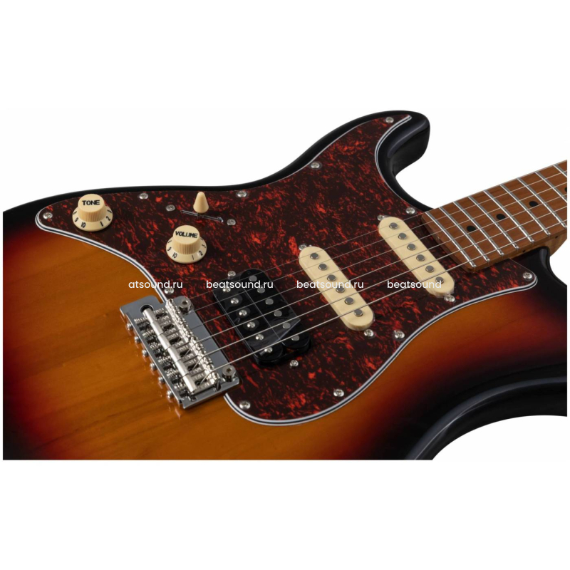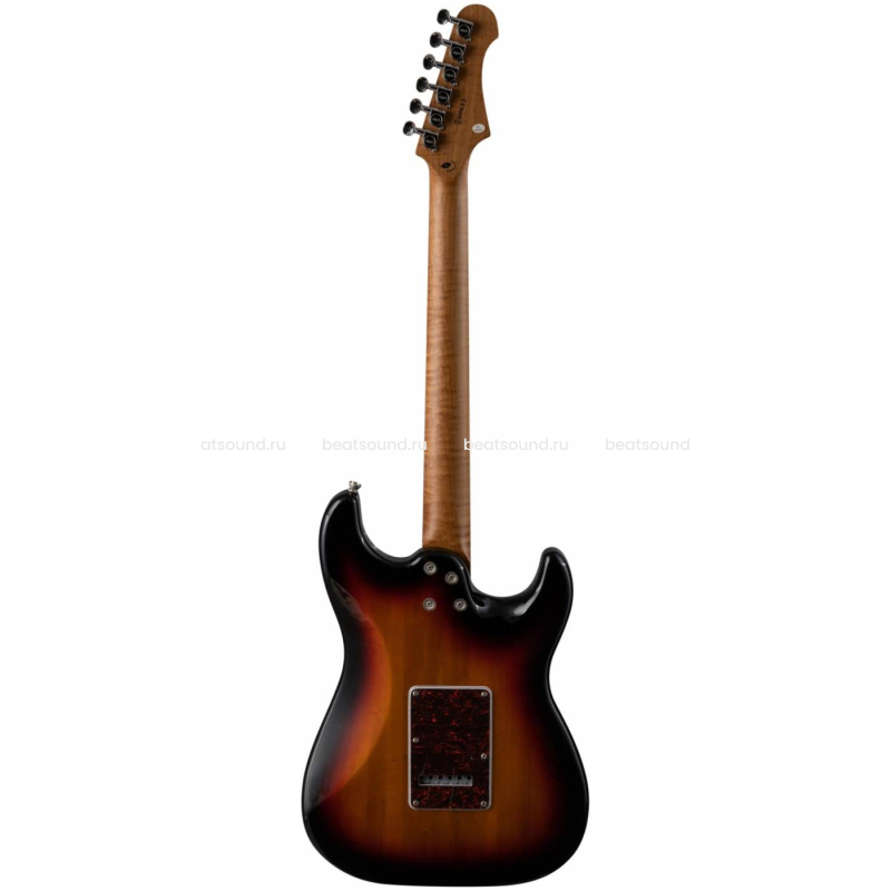 Гриф и накладка на гриф выполнены из печеного клена (roasted maple). При такой обработке поры дерева максимально сжимаются и в процессе использования вода уже не будет выходить, ваша накладка не сожмется и лады не повылазят вне зависимости от влажности и смены температуры. Плюс такое дерево выглядит очень красиво.